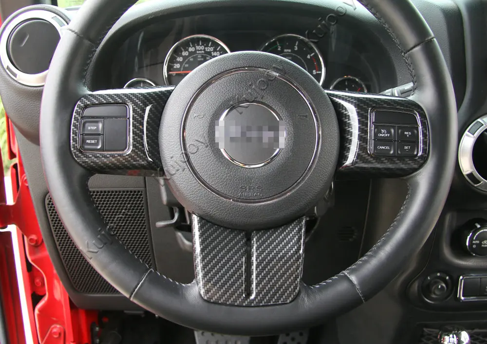 Special Offer ألياف الكربون الحبوب ABS لوحة القيادة عجلة القيادة الهواء تنفيس مقبض الباب ديكور إطار غطاء تقليم ل جيب رانجلر 4-الباب 2011 -2016 Discount 21% Today!