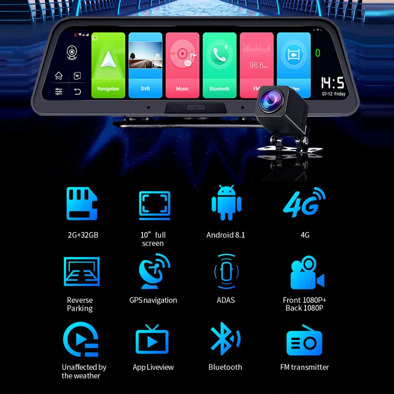 Product Name: جهد و BJ 10 "داش كام 4G كاميرا تعمل بالواي فاي للسيارة المزدوج 1080P عدسة أندرويد 8.1 RAM 2G ROM 32G ADAS نظام تحديد المواقع السيارات لوحة القيادة مسجل فيديو ...