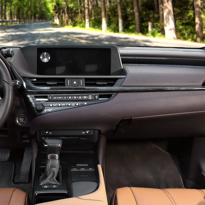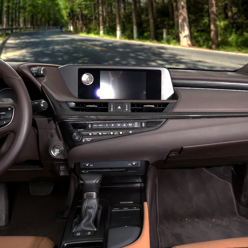 Special Offer QHCP لوحة سيارة لوحة القيادة قطاع مركز وحدة التحكم الزخارف ملصقات ABS الخشب الحبوب ألياف الكربون الأسود 2 قطعة لكزس ES200 260 300H 2018 Discount 13% Today!