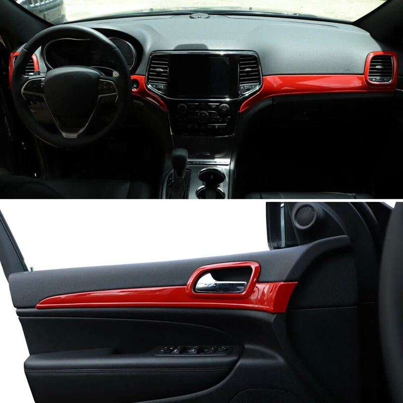 Special Offer 7 قطعة الداخلية مركز وحدة التحكم لوحة القيادة و مقبض الباب غطاء الكسوة ل جيب جراند شيروكي 2011-2020 الأحمر Discount 25% Today!