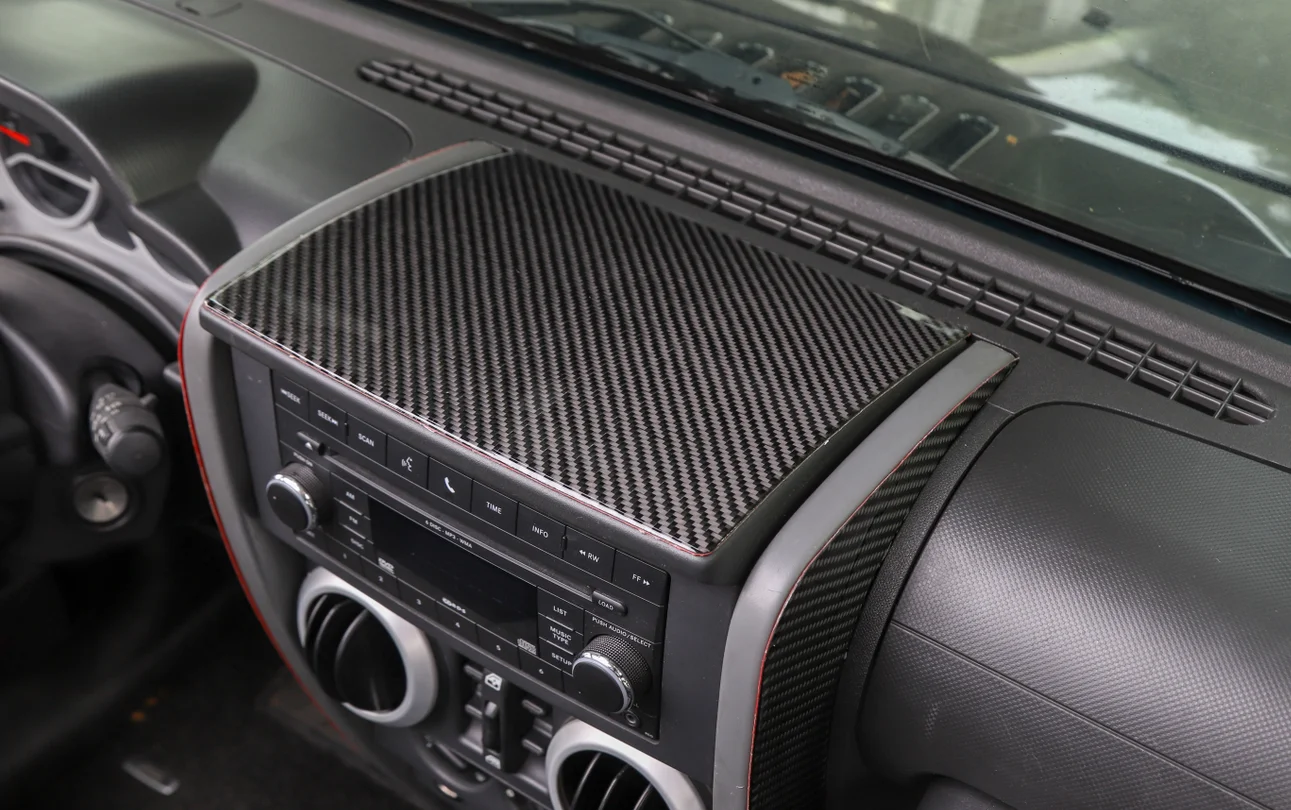 Product Name: حقيقي من ألياف الكربون لوحة القيادة غطاء وحدة التحكم المركزية لسيارة جيب رانجلر JK 2007-2010