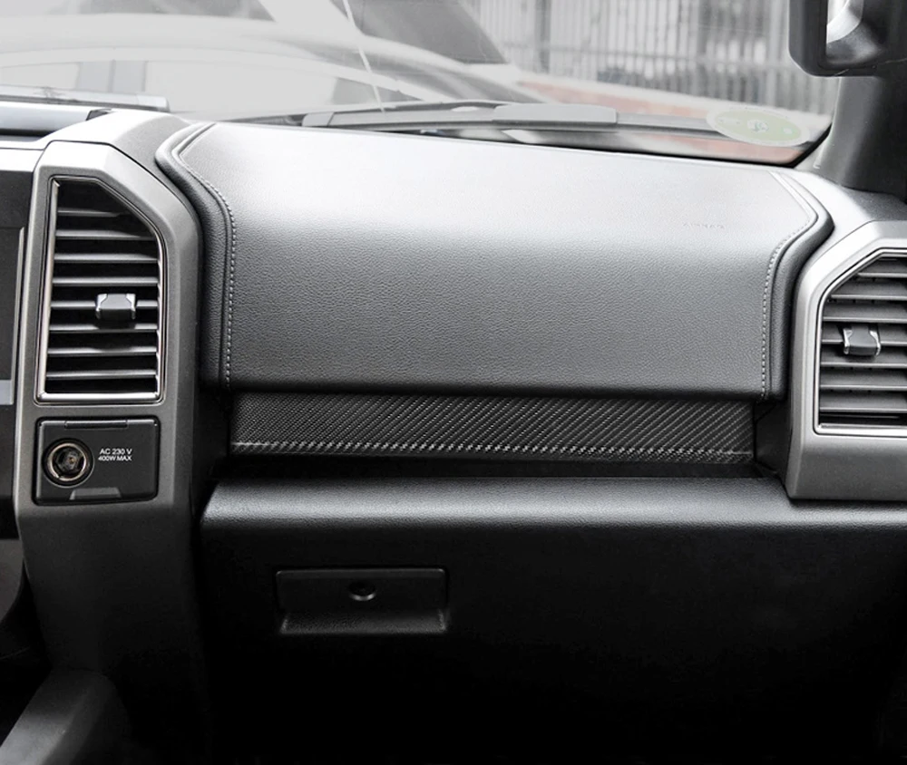 Product Name: صالح لفورد رابتور F-150 2017-2019 اكسسوارات السيارات ألياف الكربون لوحة القيادة الأوسط وحدة التحكم شريط غطاء 3 قطعة