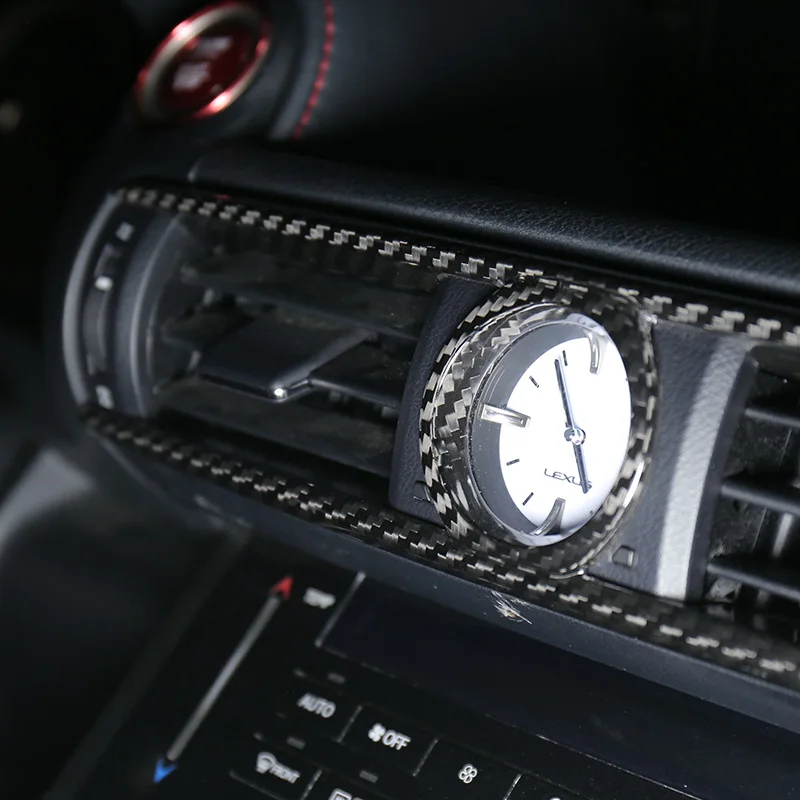 Special Offer QHCP لوحة القيادة من ألياف الكربون إطار منفذ الهواء المركزي تكييف ساعة الكوارتز السيارة غطاء الكسوة ملصق لكزس IS300 200T 250 Discount 15% Today!