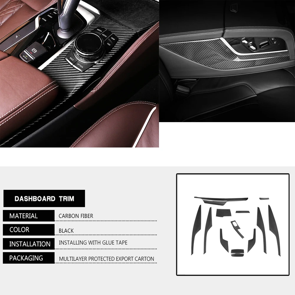 Product Name: الكربون الألياف سيارة التصميم الداخلية تريم لوحة CD لوحة غطاء الكسوة ل BMW 5 سلسلة G30 G38 520i التحكم المركزي غطاء 12 قطعة