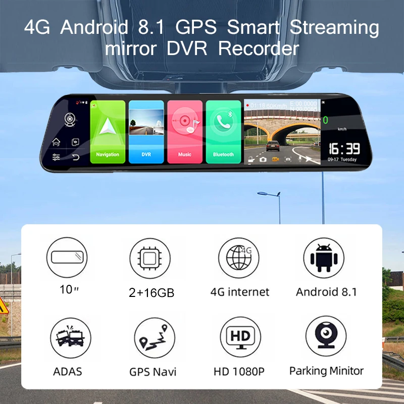 Product Name: 10 بوصة IPS مرآة خلفية 4G سيارة كاميرا لوحة القيادة نظام تحديد المواقع أندرويد 8.1 الملاحة ADAS 2G RAM 16G ROM FHD 1080P سيارة مسجل فيديو DVR