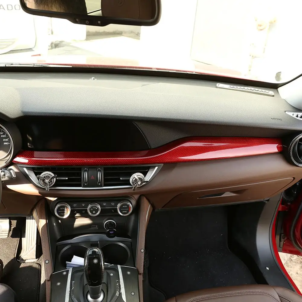 Product Name: الأحمر الحقيقي ألياف الكربون ل ألفا روميو Stelvio 2017 2018 2019 لوحة سيارة الواح الديكور اكسسوارات الكسوة اليد اليسرى محرك