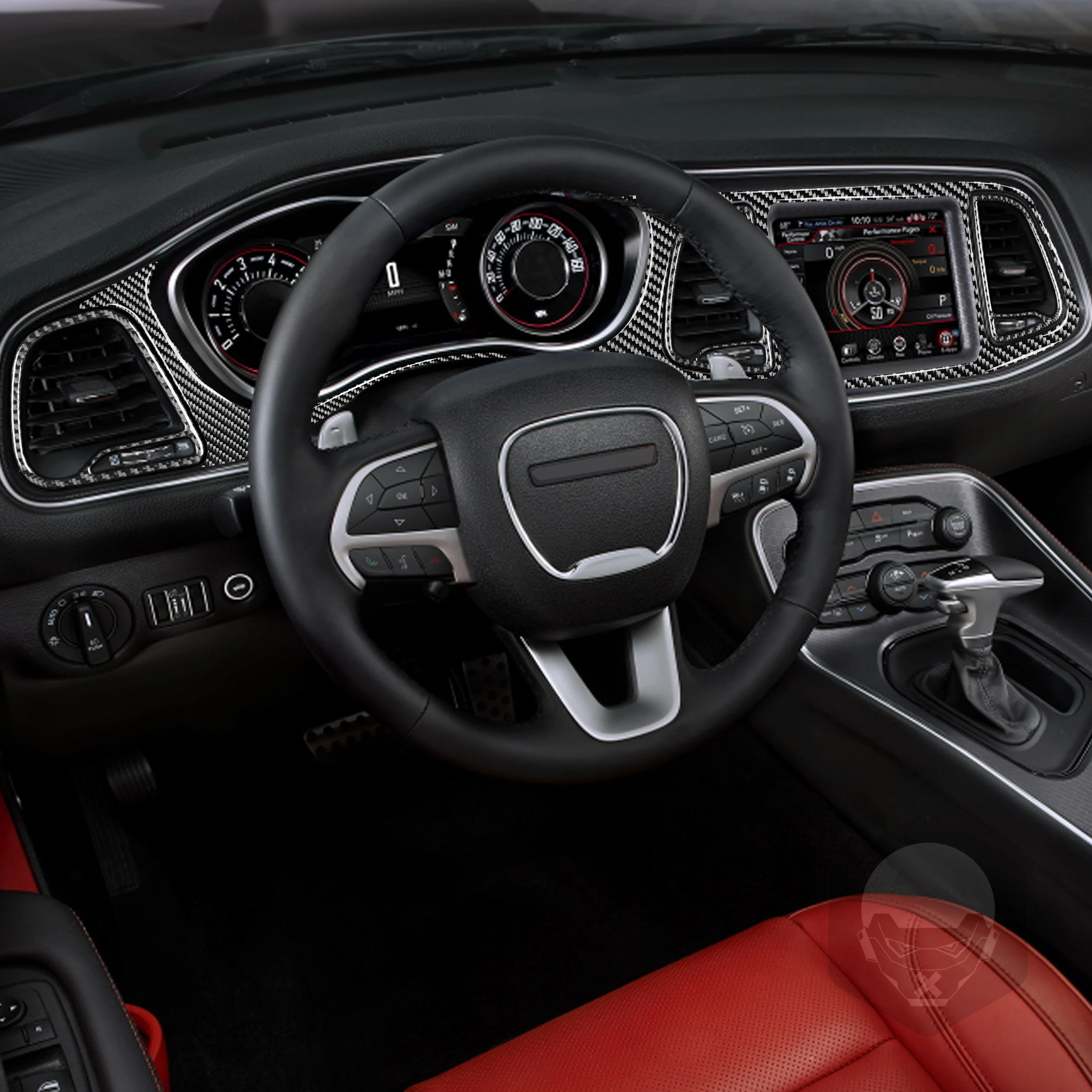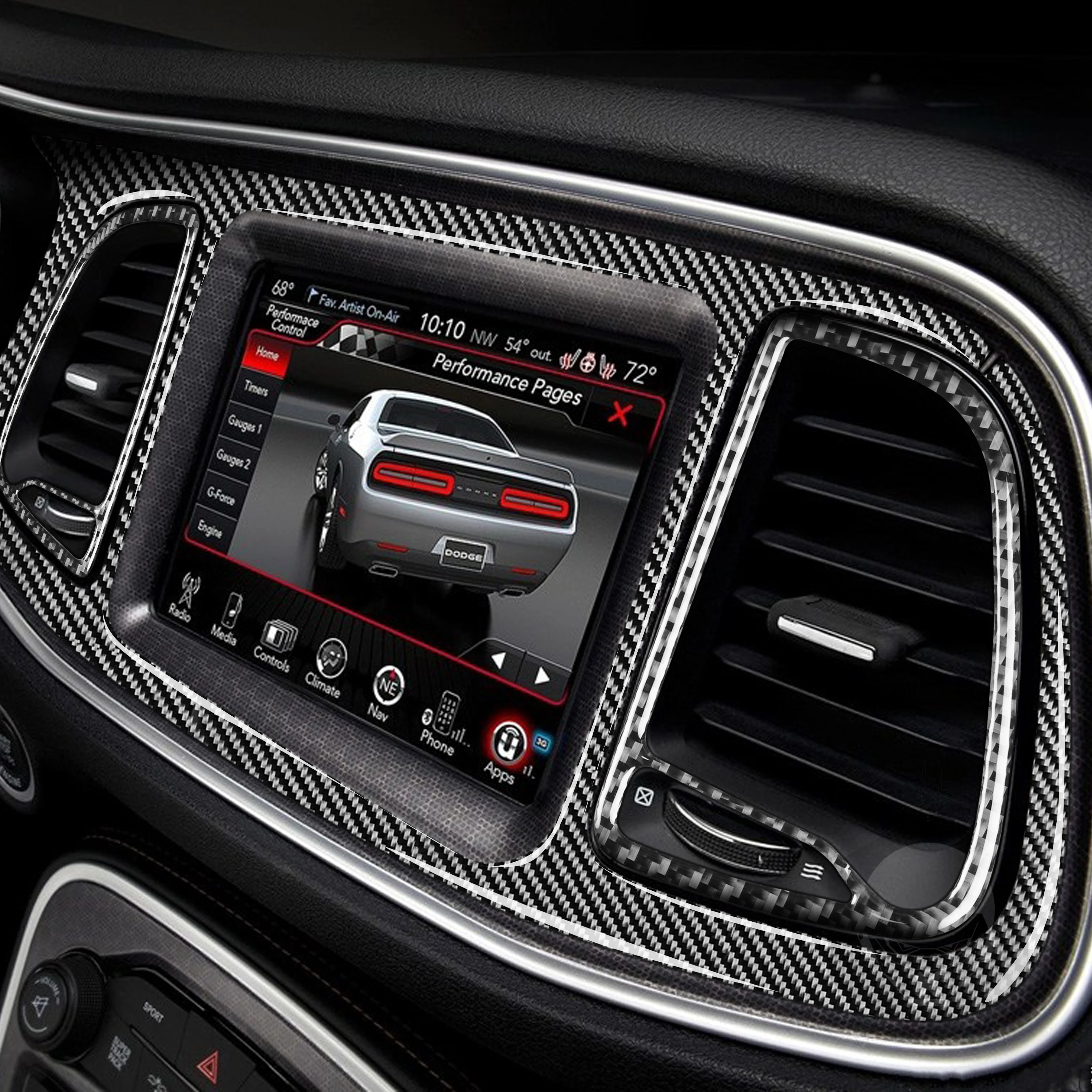 Special Offer سيارة الداخلية ألياف الكربون وحدة التحكم لوحة القيادة CD الملاحة الإطار التيار المتناوب تنفيس المخرج ملصق غطاء الكسوة ل دودج تشالينجر 2015-2020 Discount 35% Today!